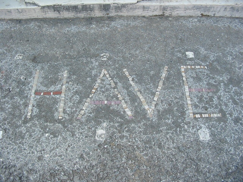 HAVE. Ce mot, écrit en tessons de mosaïque dans l’atrium d’une maison de Pompéi, m’a posé quelques maux de tête…