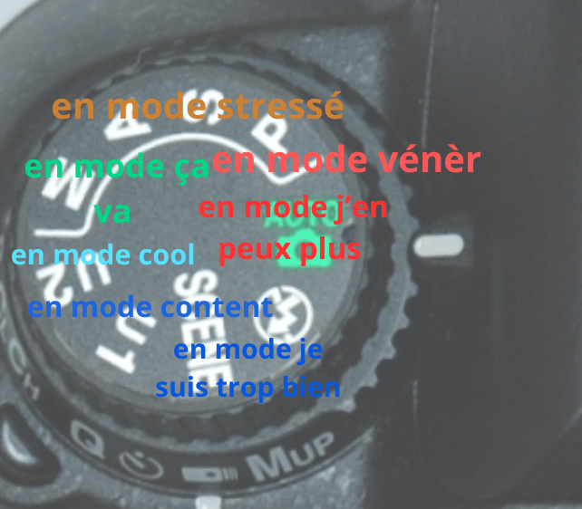 EN MODE est souvent utilisé avec le verbe être – et c’est son usage premier – pour exprimer une façon de se comporter. Comme une machine, l’humain se met EN MODE : « être en mode survie », « être en mode pas content ». Mais EN MODE peut aussi être suivi par une proposition entière, avec verbe conjugué : « Il était en mode ‘’je veux pas sortir avec toi, mais je t’aime bien quand même” ».